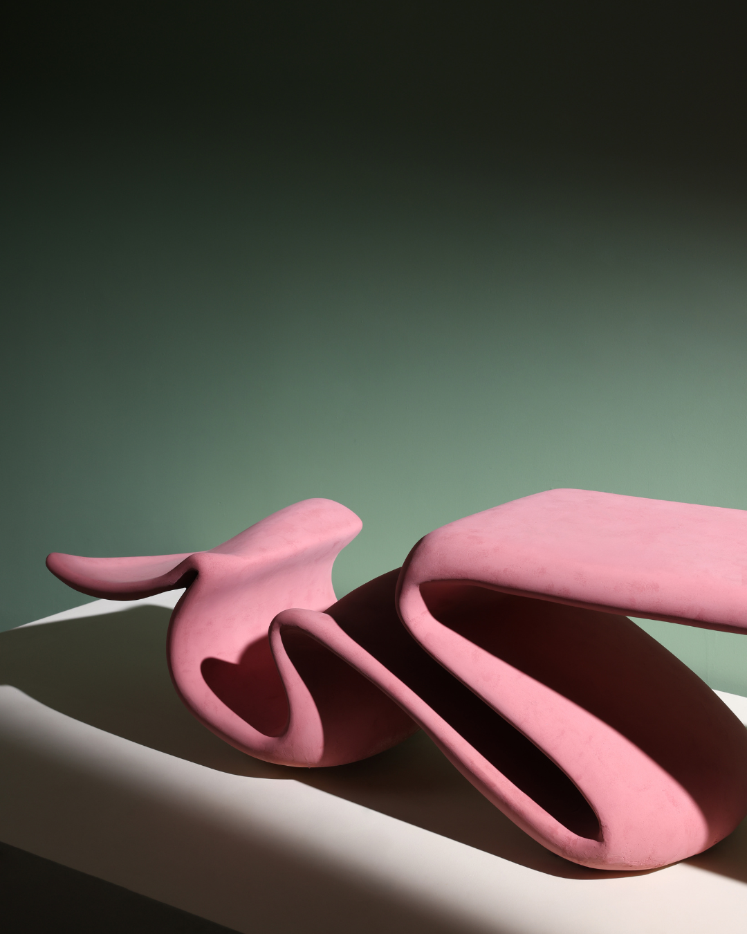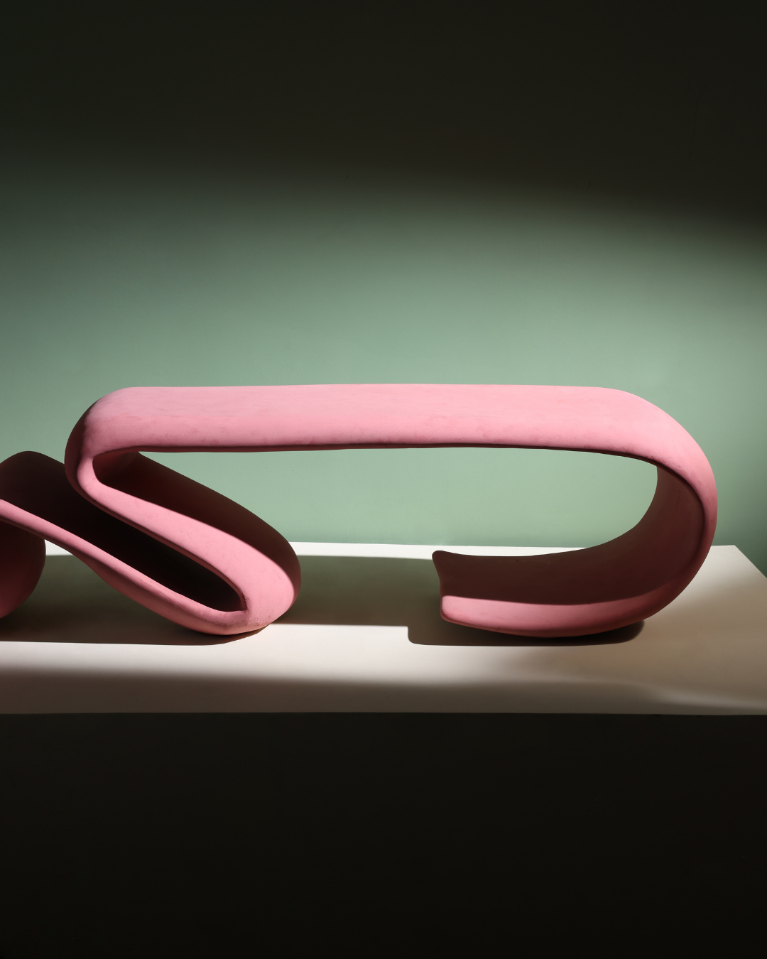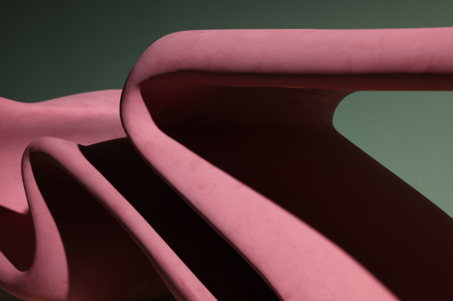 The material choice deepens this poetry. Crafted in microcement, the bench embodies a striking duality: the curves speak of dynamism and fluidity, while the medium itself is one of the strongest, most enduring materials. This contrast makes the work a paradox – motion and stillness, delicacy and strength, ephemerality and permanence.